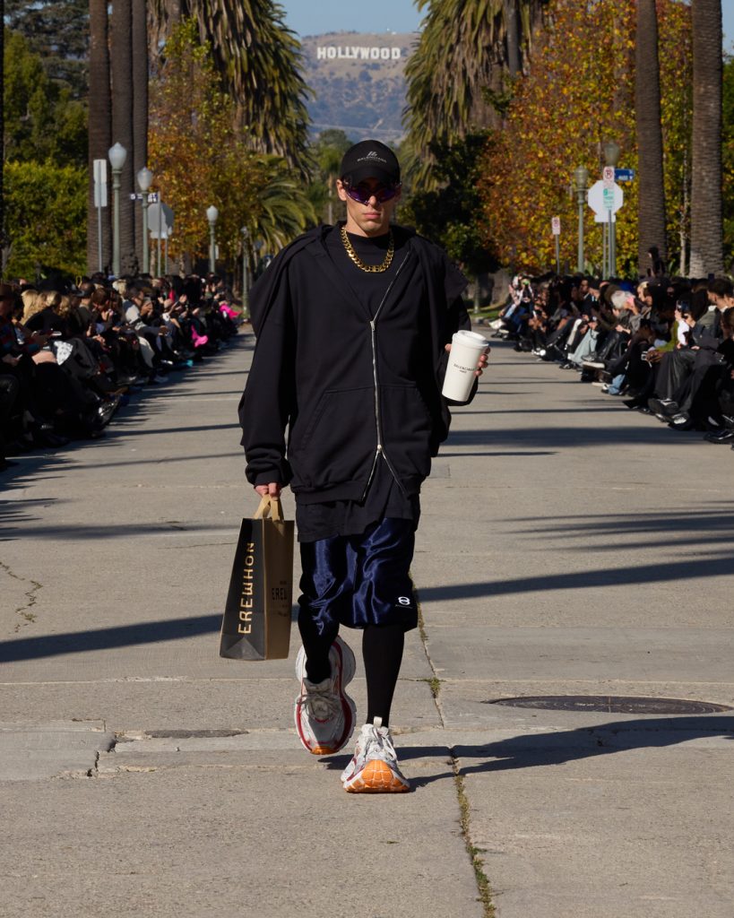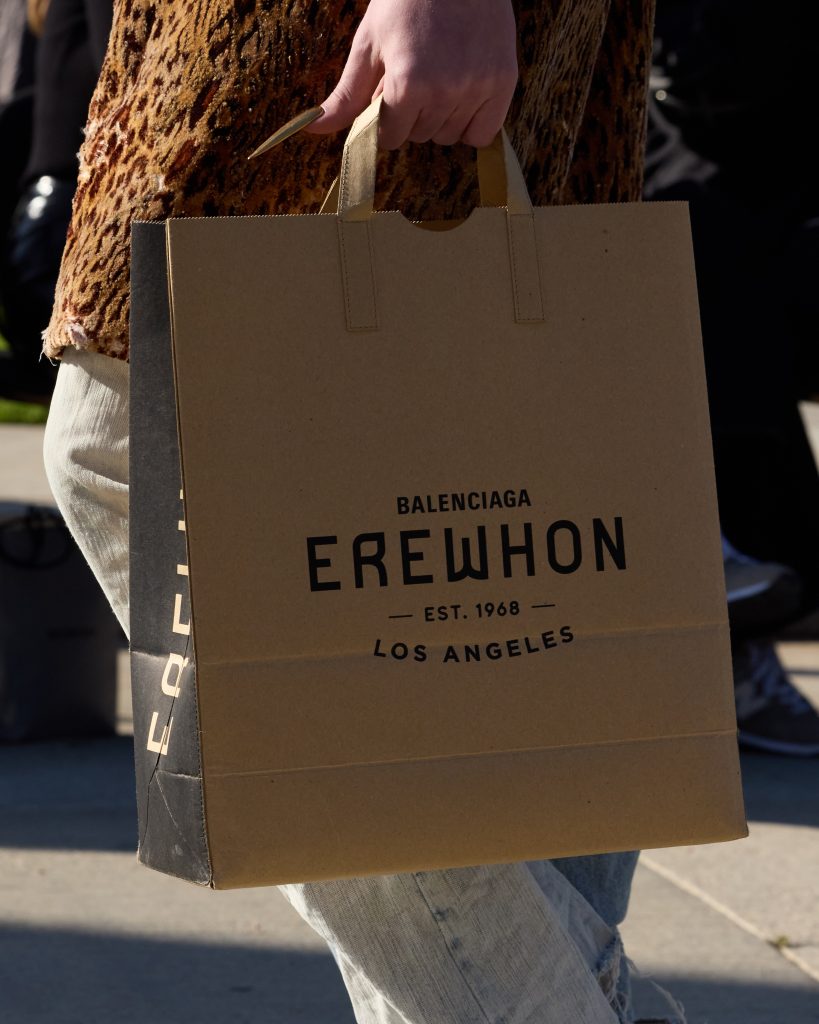เมื่อโชว์ Balenciaga Fall 24 จบลง ไอเท็มที่ติ๊กถูกก็วางจำหน่ายพร้อมอยู่หน้างาน ทั้งสนีกเกอร์รุ่น 10XL แบบเอ็กซ์คลูซีฟ กระเป๋าโท้ตหนังและถุงกระดาษ เสื้อเจอร์ซีย์ หมวกแก๊ป และผ้ากันเปื้อนที่ผลิตโดยได้รับการความร่วมมือกับ Erewhon (มารอติดตามลุคของ พีพี-กฤษฏ์ กันว่ามีไอเท็มไหนที่โดนตกมาจากงานนี้) ทั้งหมดเหล่านี้ล้วนเป็นไอเท็มเด่นที่เป็นส่วนหนึ่งของความสมบูรณ์แบบตามวิถีชาวเมืองในสไตล์บาเลนเซียก้า ความตั้งใจของ Demna ที่ต้องการให้กลุ่มเป้าหมาย ‘Get and Choose’ ตั้งแต่แรกเห็น