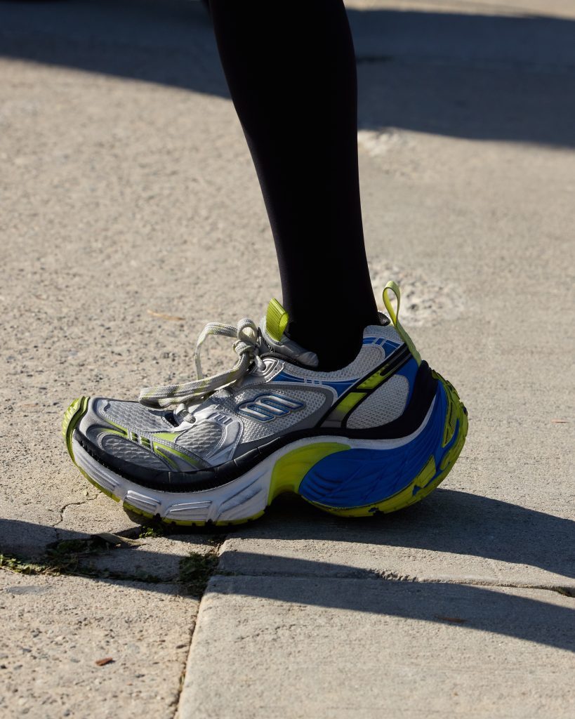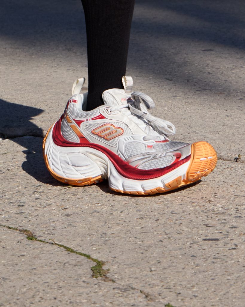 ตัวสนีกเกอร์ใหม่ – สนีกเกอร์รุ่น 10XL – ที่ยังคงให้ความรู้สึกของสัดส่วนที่เกินจริง ซึ่งเป็นซิกเนเจอร์ของ Balenciaga มีให้เลือกทั้งหมด 2 สี (สีเหลือง/ขาว/น้ำเงิน และสีน้ำเงิน/เทา/ดำ) พร้อมวางจําหน่ายแบบเอ็กซ์คลูซีฟทันทีหลังจากจบโชว์ นอกเหนือจากการวางจำหน่ายสนีกเกอร์รุ่น 10XL แบบเอ็กซ์คลูซีฟ