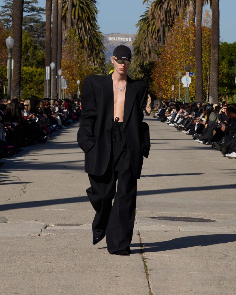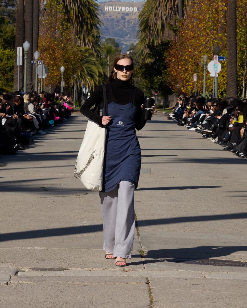 จุดเริ่มต้นของการทัชใจคือสร้างบรรยากาศของโลเคชั่นเป็น ‘ถนนที่สองข้างทางมีต้นปาล์มเรียงรายไปสุดสาย มองไปสุดลูกตาเห็นป้าย HOLLYWOOD อยู่เหนือสายตา’ ตั้งอยู่ในนครลอสแองเจลิส รัฐแคลิฟอร์เนีย ชวนให้คิดถึงฉากในภาพยนตร์ดังของฮอลลีวูด แล้วเพิ่มความรู้สึกให้โชว์ในครั้งนี้สมบูรณ์แบบมากยิ่งขึ้นโดย BFRND กับแทร็กแบบพิเศษที่ประกอบไปด้วยเสียงพากย์หลายรายการ แสดงให้เห็นถึงการตีความแฟชั่นของ L.A. ในแบบฉบับของ Demna ผ่านภาพยนตร์และตัวละคร ซึ่งเรื่องราวเหล่านี้ได้ถูกตีความออกมาเป็นการสร้างสรรค์และนำเสนอผ่านกิจกรรมต่างๆในชีวิตประจำวัน อาทิ การวิ่งจ๊อกกิ้ง โยคะ และการเข้ายิม จากนั้นก้าวไปสู่ค่ำคืนฮอลลีวูดด้วยชุดเดรสที่ได้รับแรงบันดาลใจจาก Cristóbal Balenciaga นอกจากนี้ยังมีเสื้อผ้าสไตล์กรันจ์ที่ได้รับรังสรรค์ใหม่ เดย์แวร์แบบหรูหราและการตัดเย็บอันเป็นเอกลักษณ์ของทางแบรนด์ก็ดึงดูดความสนใจ
