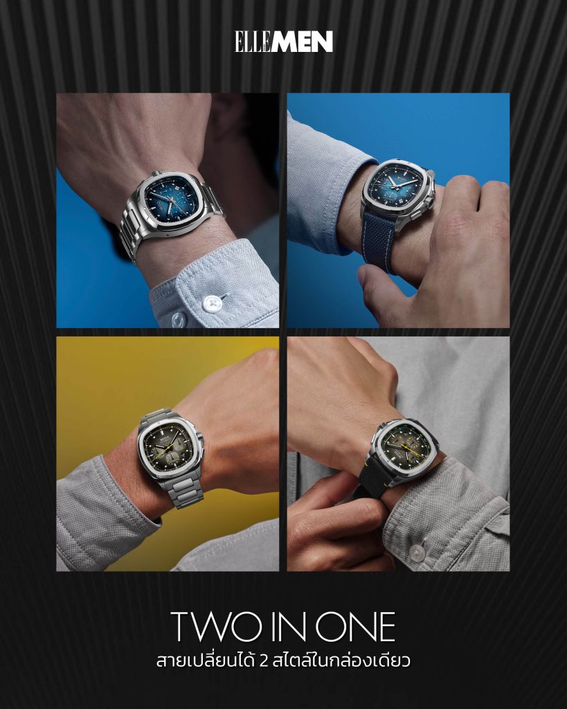Multifort TV Chronograph ออกแบบมาให้รองรับทั้งลุคสปอร์ตและลุคเนี้ยบ ด้วยสาย สเตนเลสสตีลขัดซาตินเงา ที่ต่อเนื่องกับตัวเรือน และ สายผ้าไนลอนสีน้ำเงินตัดเย็บด้วยด้ายขาว ซึ่งมอบความรู้สึกสบายและลุคแคชชวล พร้อมระบบ quick-change clasp ทำให้ผู้สวมใส่เปลี่ยนสายได้เองอย่างรวดเร็ว โดยทั้งสองสายบรรจุมาในกล่องเดียว