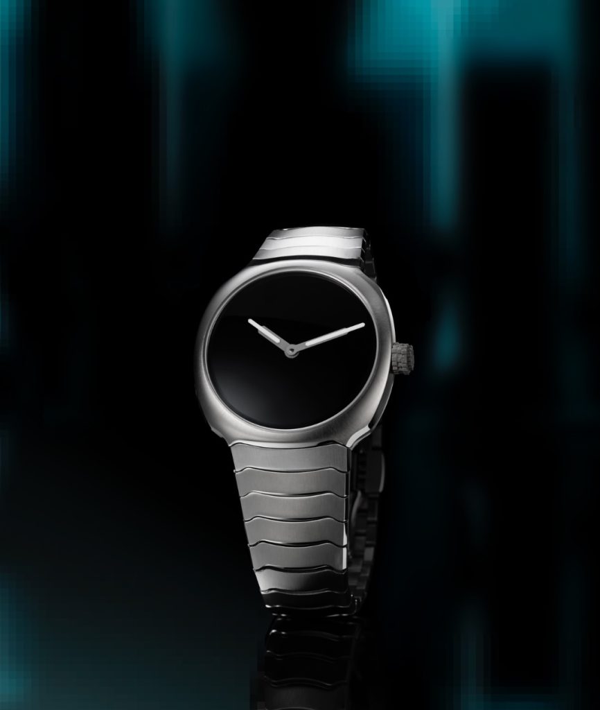 อีกหนึ่งสไตล์ร่วมสมัยจากนาฬิกา H. Moser & Cie. รุ่น Streamliner Genesis 2 – Act II กับแนวคิดสุดสร้างสรรค์ของการรวมนาฬิกาแสดงเวลาแบบเข็มชี้หรืออนาล็อก เข้ากับสไตล์ทันสมัยแบบดิจิทัล มาในตัวเรือนทรงคุชชั่น และความเด่นแบบไอคอนิกของหน้าปัดสีดำ Vantablack® ดูดซับแสงได้ถึง 99.965% จึงนับเป็นวัสดุที่มีสีดำที่สุด ตัดกับเข็มชี้ชั่วโมงและนาทีบรรจุสารเรืองแสง Globolight® รับกับเม็ดมะยมตกแต่งด้วยลวดลายพิกเซลแบบ 3 มิติ