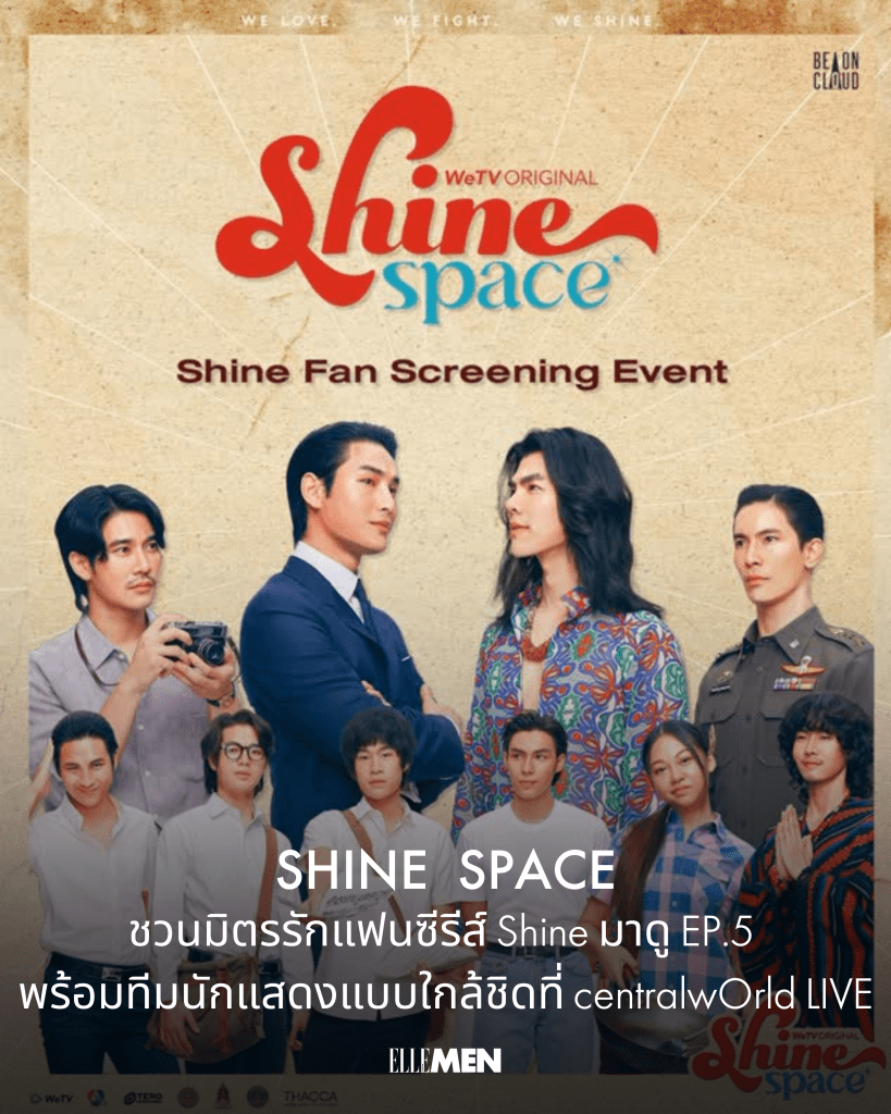 สำหรับแฟนซีรีส์ Shine พบกับ Mile, Son, Euro, Peter, Mio, Bump, Fuaiz, JJay, และ Senam รับชมรอบพิเศษที่ centralwOrld เตรียมตัวอินไปกับเรื่องราวและมิตรภาพของตัวละครโปรด