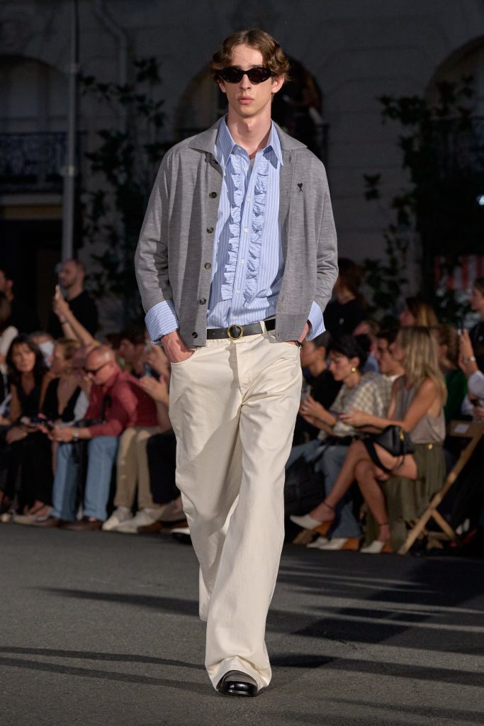 Ami Paris Spring-Summer 2026 ณ Place des Victoires ใจกลางกรุงปารีส คือการส่งผ่านอัตลักษณ์ของแบรนด์ได้อย่างละเมียดละไมและเต็มไปด้วยอารมณ์ Alexandre Mattiussi (อเล็กซองด์ มาตีอุสซี) ผู้ก่อตั้งและครีเอทีฟไดเรกเตอร์ของแบรนด์ ไม่เพียงแต่จัดโชว์บนถนนที่เป็นที่ตั้งสำนักงานใหญ่ของเมซง