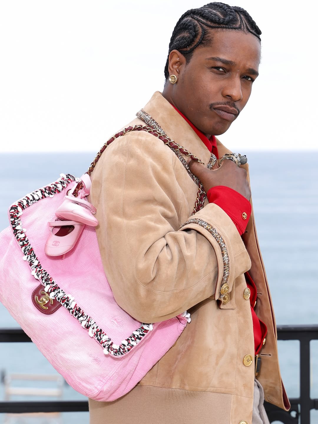 ส่วนลุคของ Rocky ยังคงยืนหนึ่งในบทบาทผู้ชายที่ตีความ CHANEL ได้อย่างเป็นธรรมชาติ ลุคทั้งหมดถูกหยิบมาจากคอลเล็กชั่นล่าสุดแบบเต็มตัว เสื้อเชิ้ตสีแดงสดตัดกับแจ็กเก็ตหนังกลับสีทรายที่แทรกดีเทลทวีดและกระดุม double-C อันเป็นรหัสคลาสสิกของแบรนด์ ก่อนบาลานซ์ด้วยกางเกงโทนเทาเบจและรองเท้าที่ช่วยคุมโทนให้ภาพรวมดูเฉียบคม แต่ยังเปิดพื้นที่ให้ลูกเล่นอย่างกระเป๋าสีชมพูโดดเด่นขึ้นมาอย่างมีชั้นเชิง นี่คืออีกหนึ่งบทพิสูจน์ว่าพรมแดนของเมนส์แวร์กำลังถูกขยับ และ A$AP Rocky คือหนึ่งในคนที่ผลักมันไปข้างหน้าอย่างชัดเจน