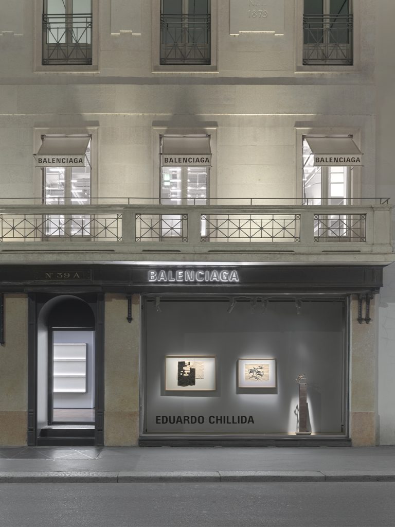 นิทรรศการครั้งแรกนี้นำเสนอผลงานจำนวนเจ็ดชิ้นของ Eduardo Chillida ศิลปินชาวบาสก์ผู้ทรงอิทธิพล ซึ่งบางผลงานเป็นการรำลึกโดยตรงถึง Cristóbal Balenciaga ผู้ก่อตั้งแบรนด์ โดยถูกจัดวางเคียงข้างคอลเล็กชันปัจจุบันภายในสโตร์ เพื่อสานต่อบทสนทนาทางศิลปะที่ก่อรูปขึ้นตั้งแต่หลายทศวรรษก่อน ความสัมพันธ์ระหว่าง Chillida และ Balenciaga เริ่มต้นขึ้นผ่านครอบครัว