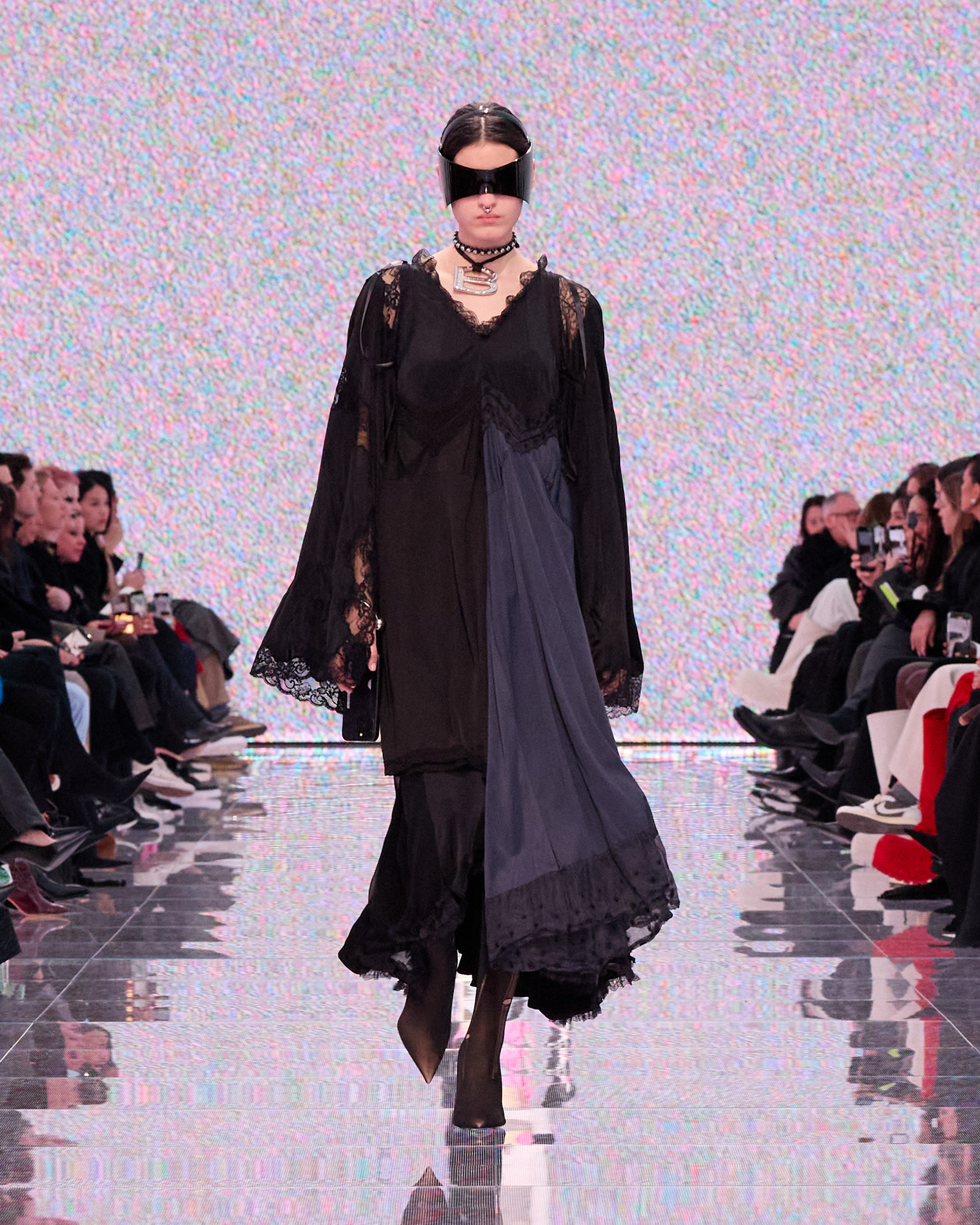 แต่ตัวตนของเขาก็อาจจะไม่เพียงพอให้เหล่าแฟนๆ ได้ชื่นชมกัน ในฐานะหัวเรือของเมซงที่มีประวัติศาสตร์อันยาวนานเขาเลยหยิบความสมบูรณ์แบบและความสร้างสรรค์ของ ‘โครงสร้างชุด’ ที่ Cristóbal ได้ทิ้งไว้ให้กับโลกแฟชั่น มาผสานกับความดิบและความขบถของของ ในคอลเล็กชั่นนี้เราเลยได้เห็นงานออกแบบเสื้อผ้าที่ไม่สมบูรณ์แบบ 100% แต่สามารถสื่อสารออกไปถึงอัตลักษณ์ของแบรนด์และหัวเรือคนเก่งคนนี้ ผนวกกับพรีเซนเทชั่นอันหวือหวาอย่างหน้าจอบนผนังที่ฉายบรรยากาศต่างๆ รวมไปถึงวิช่วลสุดคูล ราวกับพาเราเข้าไปสู่โลกอนาคตอันรุ่งเรืองของ Balenciaga