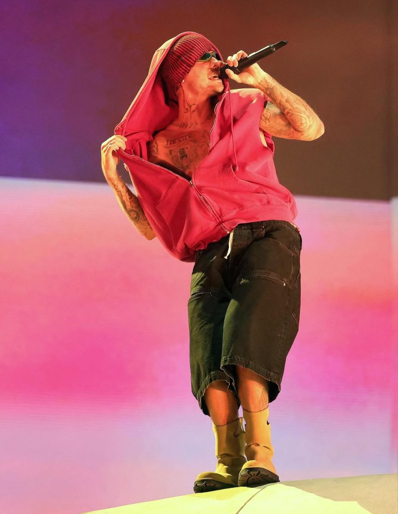 สัปดาห์ที่สองของ Coachella กลายเป็นอีกหนึ่งโมเมนต์ที่ตอกย้ำเซนส์แฟชั่นของ Justin Bieber เมื่อเขาปรากฏตัวบนเวทีในลุคสตรีทที่ชวนหยิบไปแต่งตาม ฮู้ดดี้สีแดงจาก Greg Ross รุ่น Newport Beach Shoulder Pad Sleeveless Hoodie คอลเล็กชั่น FW26 แมตช์กับกางเกงทรงหลวมและรองเท้าบู๊ตจาก Loewe ก่อนคอมพลีตลุคด้วยบีนนี่และแว่นตาจาก SKYLRK ทั้งหมดนี้พาเราย้อนกลับไปสู่กลิ่นอายฮิปฮอปต้นยุค 2000s ได้อย่างชัดเจน