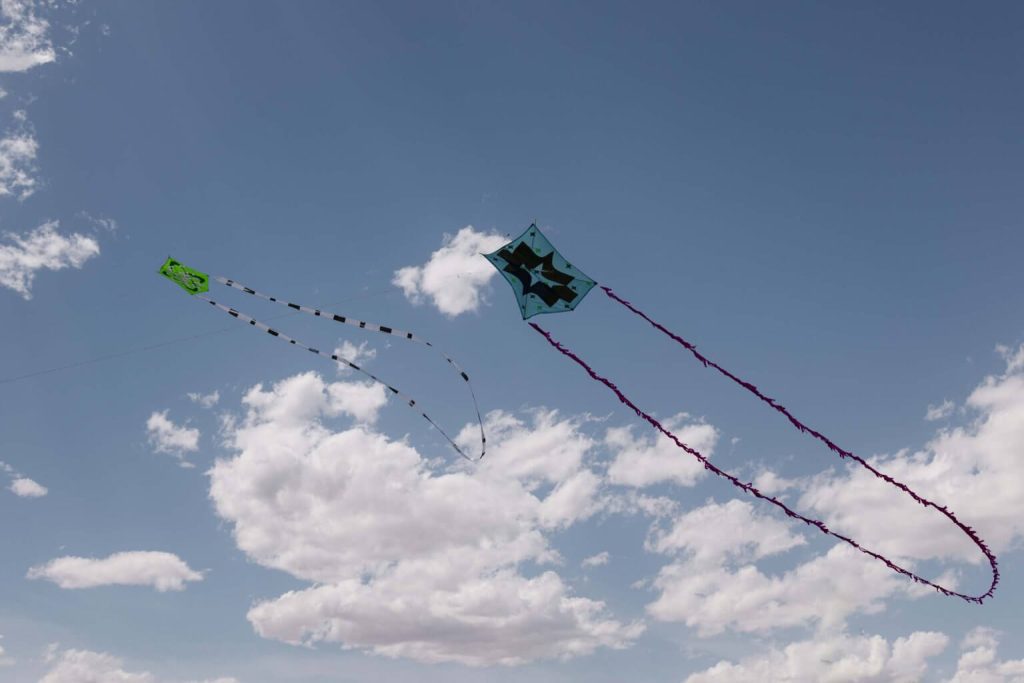 ผลงานคอลลาบอเรชันระหว่าง Are You Mad และ Jeanne Harignordoquy จาก SPF50 เปลี่ยนท้องฟ้าให้กลายเป็นพื้นที่จัดแสดง ‘ว่าว’ แต่ละตัวถูกออกแบบเป็นคาแร็กเตอร์ขนาดใหญ่ พร้อมกราฟิกที่อ่านได้จากระยะไกล วัสดุทั้งหมดผลิตจากผ้าเหลือใช้ ตั้งแต่ ripstop ไปจนถึง Gore-Tex และเสื้อกันฝนรีไซเคิล