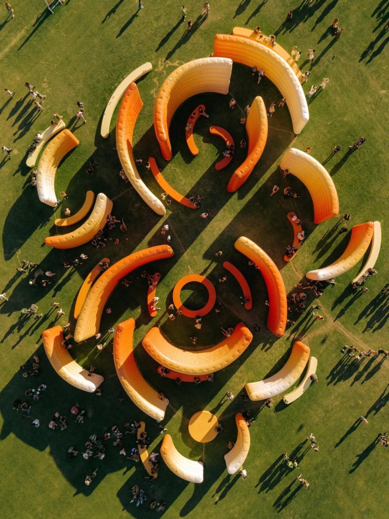 โปรแกรมศิลปะปีนี้ภายใต้การดูแลของ Raffi Lehrer และ Paul Clemente ขยับจากความตระการตาไปสู่การมีส่วนร่วม อินสตอลเลชันแต่ละชิ้นไม่ได้ถูกออกแบบมาเพื่อมอง แต่เพื่อเข้าไปสัมผัสเป็นทั้งที่พักพิง เงา และจังหวะพักหายใจท่ามกลางพลังงานเข้มข้นของเทศกาล