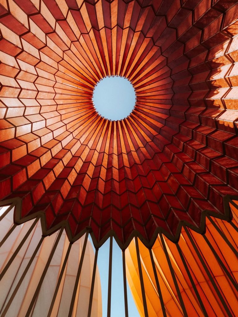 จากระยะไกล มันคือมวลประติมากรรมขนาดใหญ่ แต่เมื่อเข้าใกล้จะเผยให้เห็นรายละเอียดของโครงตาข่ายที่เปิดรับแสงและเงาอย่างต่อเนื่อง กลางวันให้มิติของเลเยอร์เงา ขณะที่กลางคืนเพิ่มความลึกและคอนทราสต์