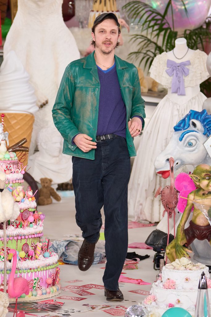 ช่วงท้ายโชว์ปิดด้วยแจ็กเก็ตหนังและกางเกงยีนส์เคลือบลามิเนตในเฉดพาสเทล ฟ้า เบบี้บลู ชมพู เหลือง และส้ม ก่อนจะพาเข้าสู่การดีคอนสตรักต์เสื้อผ้าผู้หญิงร่วมสมัย ผ่านการผสานผ้าลายดอกเข้ากับจีบคอนทราสต์จัดจ้าน และรอยยับอันเป็นลายเซ็น
