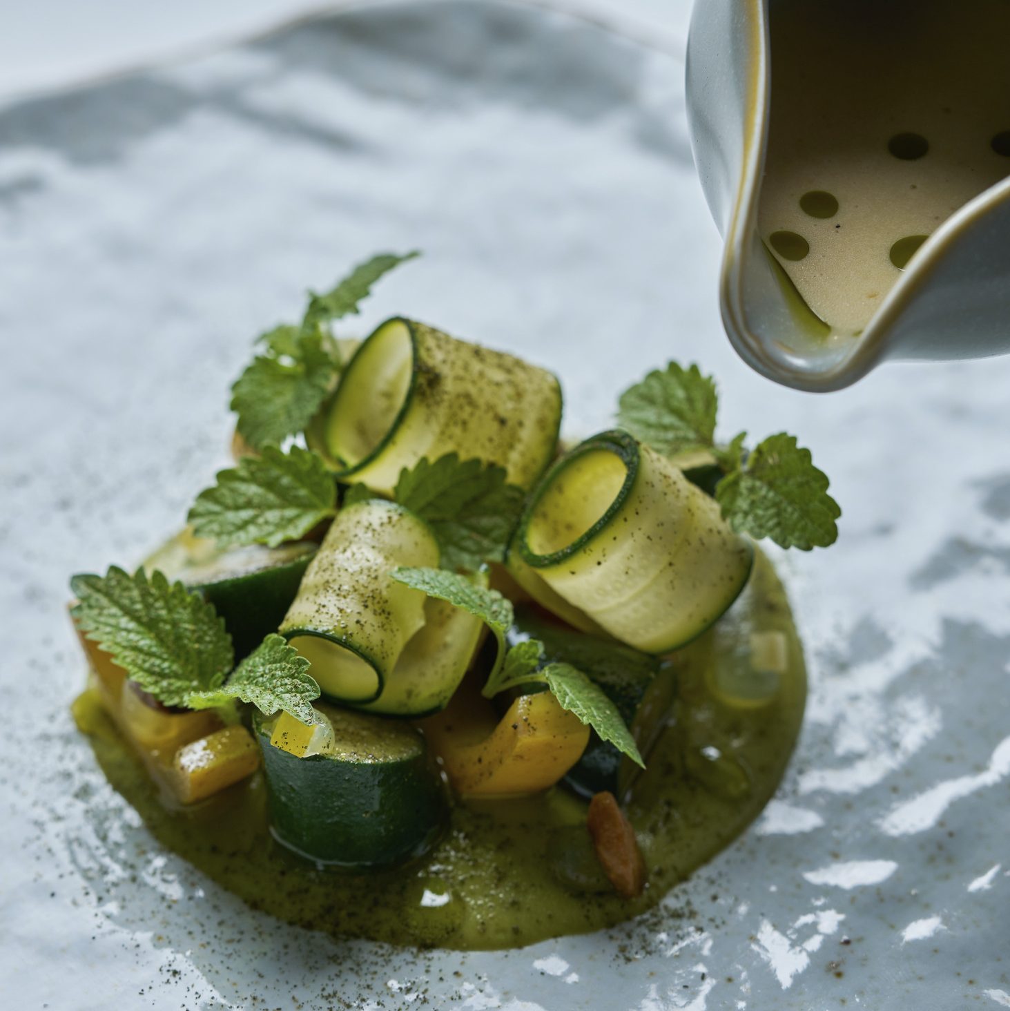 เคล็ดลับคุณภาพของมื้ออาหารนี้คือเหล่าผลผลิตสดใหม่ที่สุกงอมภายใต้แสงตะวัน อาทิ Watercress Beignet, Zucchini, French Green Beans หรือ Purple Artichoke แต่สำหรับผู้ที่แสวงหาความประณีตขั้นสุด Duet ยังได้คัดสรรวัตถุดิบระดับ Haute Cuisine อย่าง Oscietre Caviar และ Brittany Blue Lobster มาเติมเต็มรสชาติและสร้างเอกลักษณ์ที่แตกต่างไม่เหมือนใคร