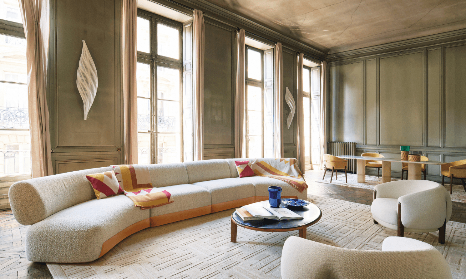 สีสันจากต้นไม้ ใบไม้ หิน เปลือกหอย กลายเป็นเฉดสีที่ส่งให้ชิ้นงานของ Armani/Casa โดดเด่นกว่าใคร ยังไม่นับรวมเฉดสีพิเศษ ‘Greige’ หรือเทาผสมเบจซึ่งมิสเตอร์อาร์มานีเป็นผู้คิดค้นด้วยตนเอง