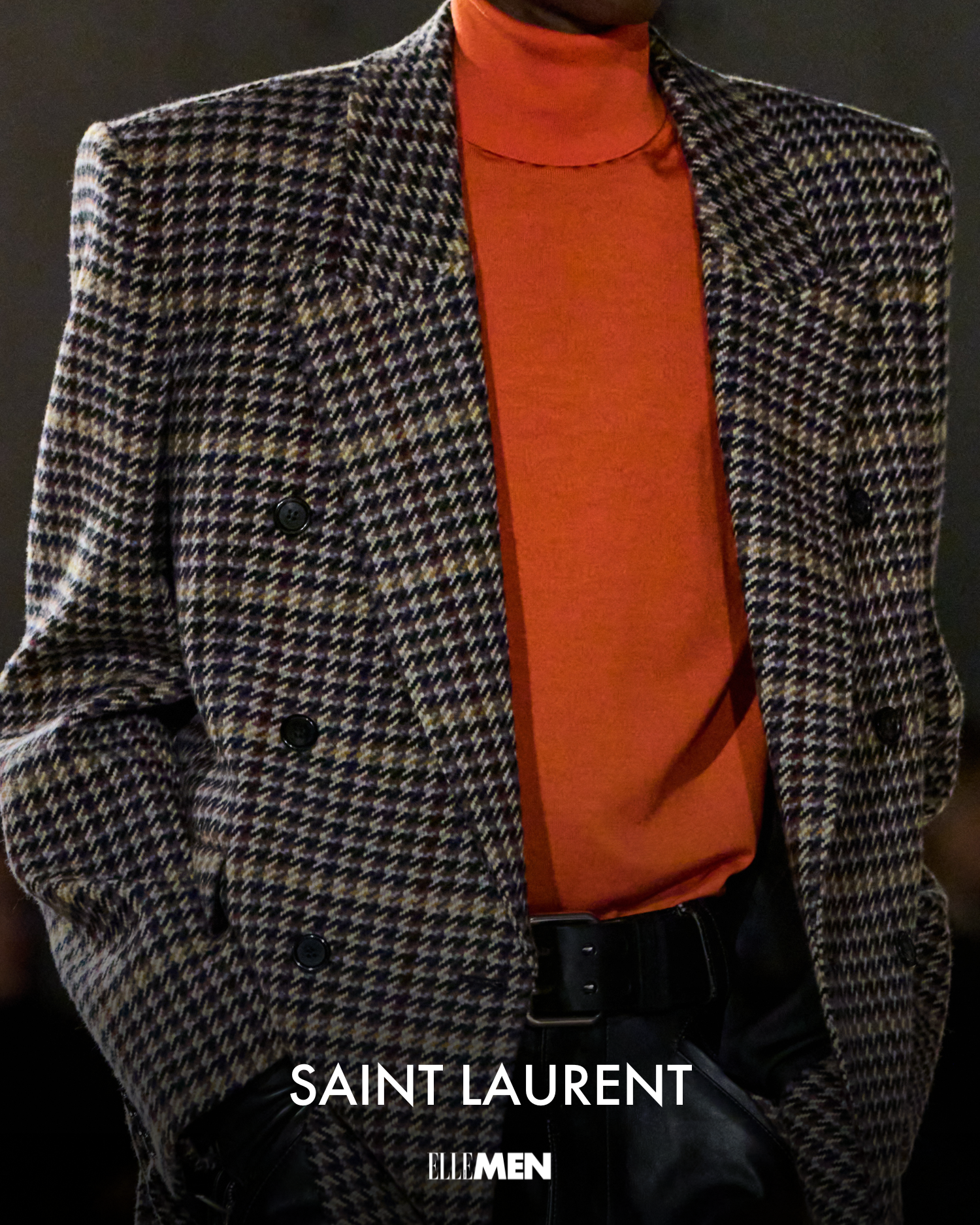 เริ่มต้นจาก Bluemarble ที่พาผ้าวูลซอฟต์เชียร์ลิ่งมาตีความใหม่ในโทนเหลืองสด เพิ่มเลเยอร์ความสนุกด้วยเสื้อเชิ้ตเลื่อมระยิบระยับ สร้างคอนทราสต์ที่ทั้งขัดแย้งและลงตัวในเวลาเดียวกัน ก่อนจะต่อยอดความน่าสนใจไปถึง Saint Laurent ซึ่งนำเสนอโครงแจ็กเก็ตทอลายหมากรุกสุดคลาสสิก จับคู่กับเสื้อทัร์เทิลเนกสีส้มสด อัดพลังความอบอุ่นและความร้อนแรงเข้ากับโครงชุดเฉียบคมที่แบรนด์ถนัด