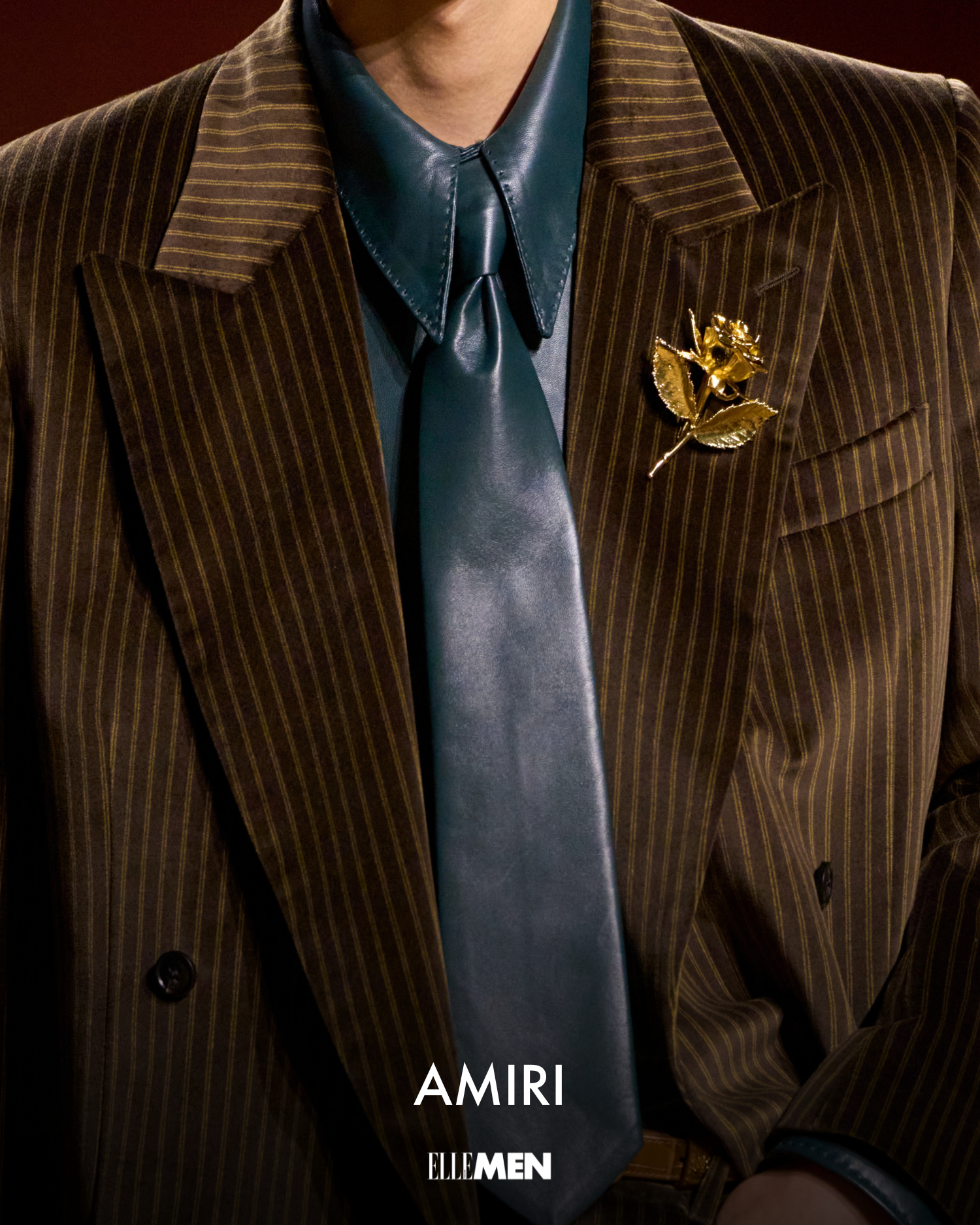 อีกหนึ่งลุคที่ไม่อาจมองข้ามคือชุดสูทกำมะหยี่สีเขียวสดจาก Willy Chavarria ที่คืนชีพความหรูหราในโทนสีเหนือความคาดหมาย เสริมด้วยผ้าไหมซาตินสีน้ำเงินซึ่งถูกจับเป็นดอกไม้บนอกเสื้อ กลายเป็นบทสนทนาที่เล่นกับสัมผัสหรูหราและความร่วมสมัยอย่างมีชั้นเชิง
