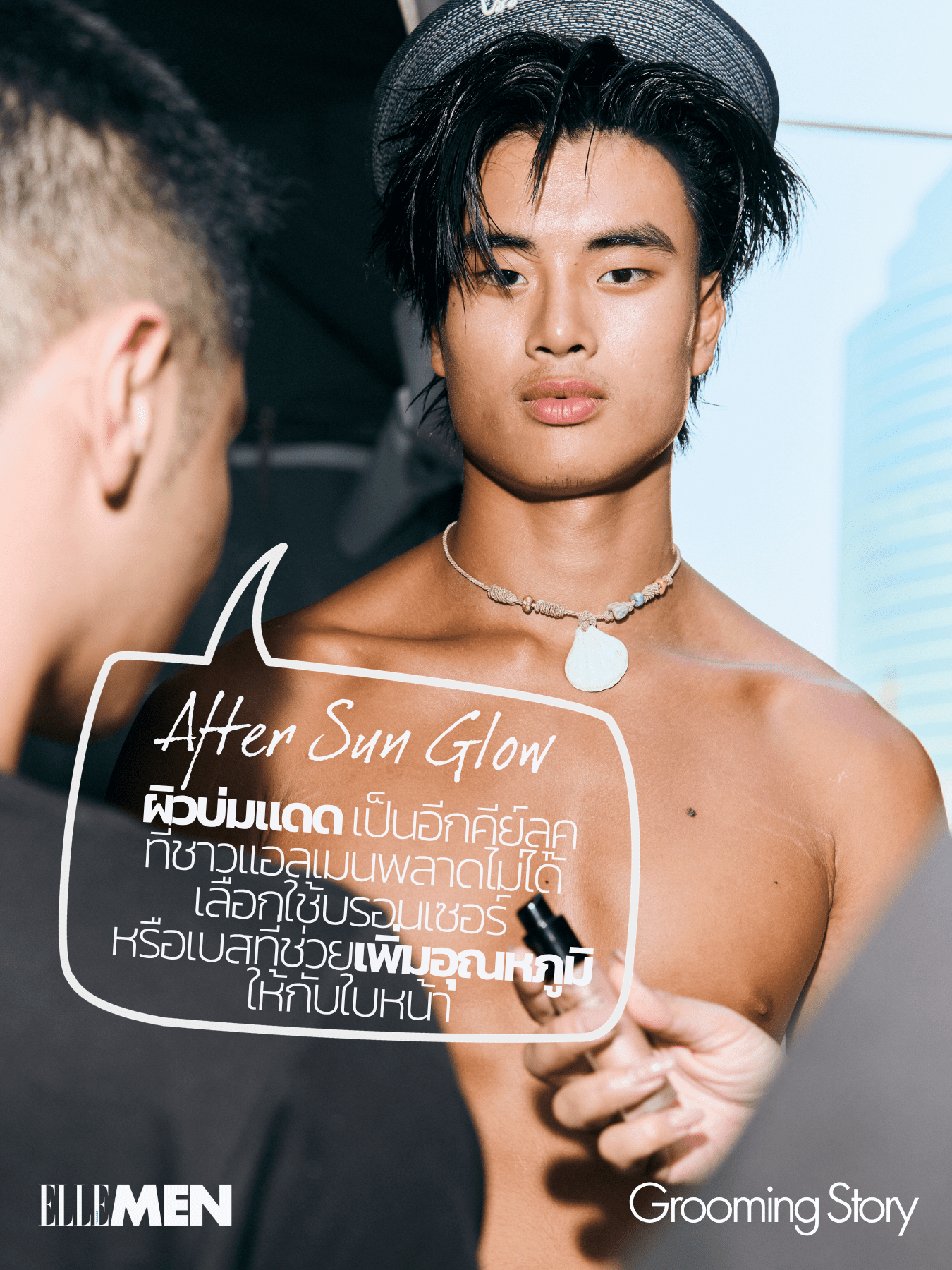 ELLE MEN Tips: สำหรับซัมเมอร์ที่อุณหภูมิสุดโต่งเช่นนี้ อย่าลืมเลือกใช้ผลิตภัณฑ์ที่มีคุณสมบัติ Long-lasting และ Humidity-proof เพื่อให้ทั่งผิวและผมของคุณยังคงสถานะ Perfect ตั้งแต่เช้าจรดค่ำครับ