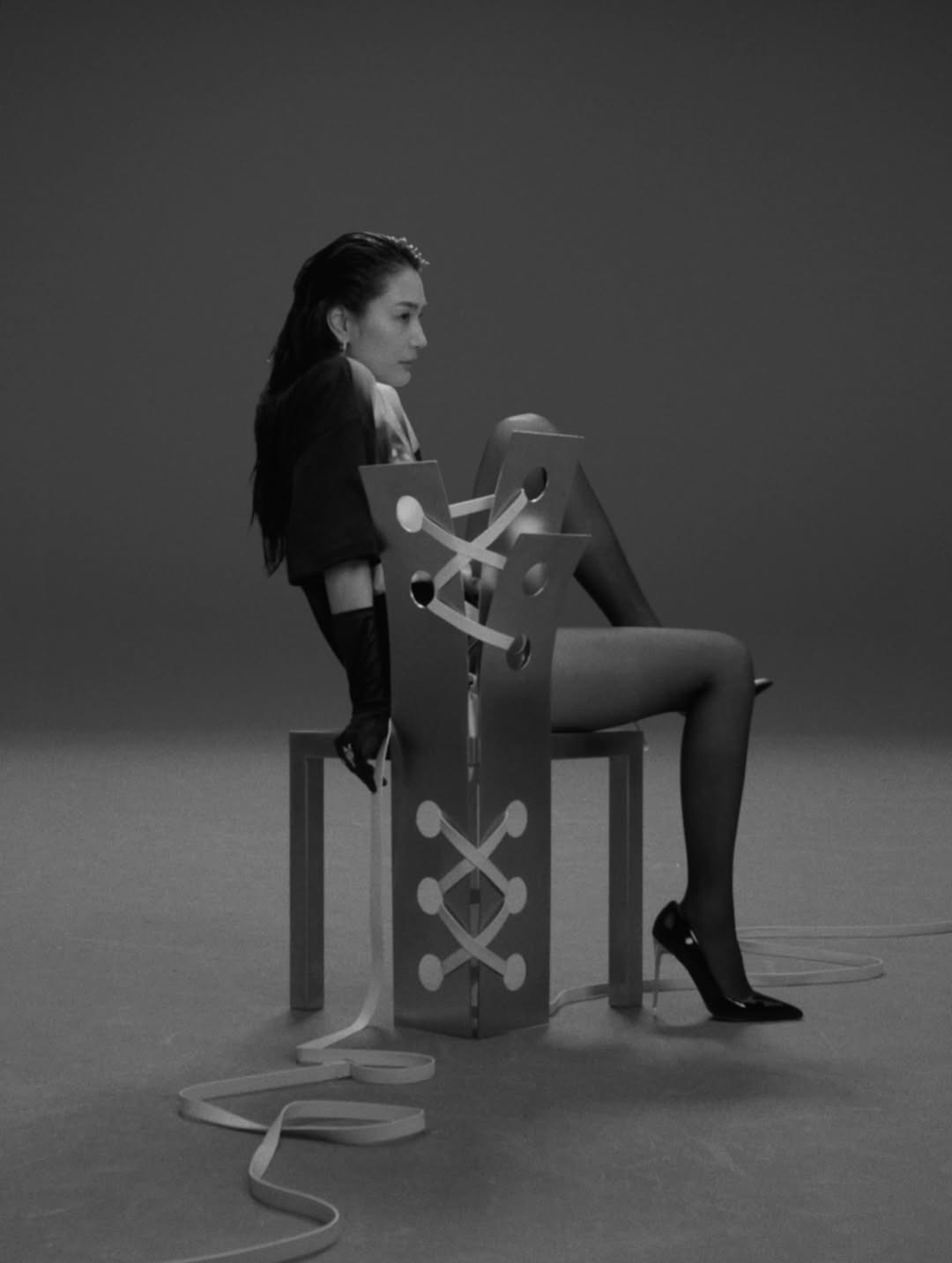 หากย้อนรอยที่มาของเก้าอี้ทรงแปลกตา คล้ายคอร์เซ็ตที่ถูกร้อยเชือกเข้าหากัน จะพบว่าเป็นผลงานของ Nara Lee ดีไซเนอร์จากสตูดิโอ EEL ผู้ทำงานอยู่ระหว่างปารีสและโซล โดยเก้าอี้ที่ปรากฏในมิวสิกวิดีโอคือ Pul Chair (รุ่น Pul 02 และ Pul 07) ซึ่งโดดเด่นด้วยโครงสร้างสเตนเลสสตีลผสานหนัง ถ่ายทอดเส้นสายแบบ industrial ที่แข็งแรง แต่ในขณะเดียวกันก็แฝงความเป็นประติมากรรมร่วมสมัยอย่างชัดเจน