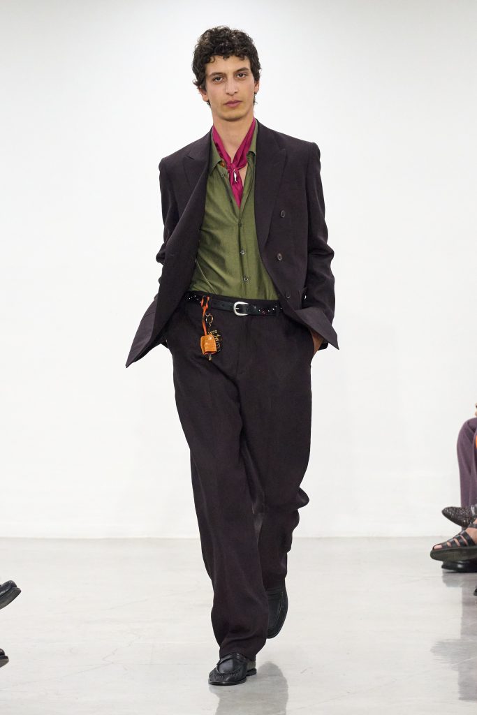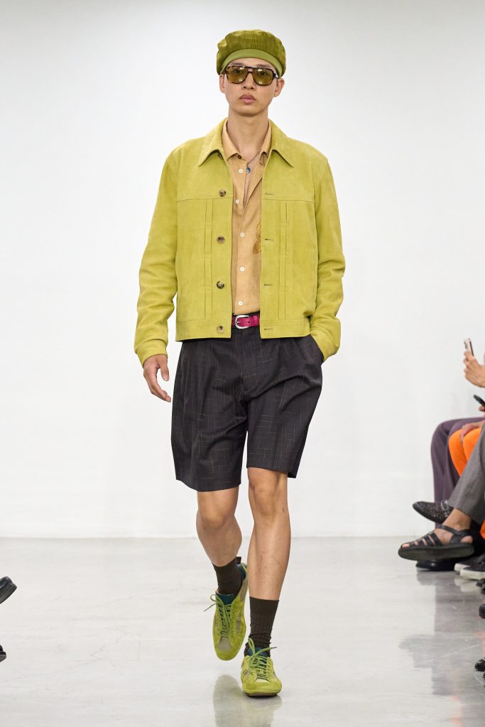 สิ่งที่น่าสนใจอีกอย่างคือการจับคู่สีที่กล้าหาญ เช่น เขียวอ่อนกับเทา ส้มกับม่วงลาเวนเดอร์ หรือชมพูฟูเชียกับเขียวมะกอก ที่พาใจเราล่องไปถึงยุค ’70s โดยเฉพาะเมื่อแมตช์กับแจ็กเก็ตหนังทรงรถสปอร์ตแบบสั้น