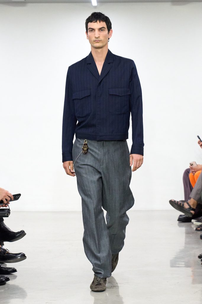 “ลูกค้าหลายคนอยากได้อะไรที่มีกลิ่นอายแบบเครื่องแบบหรือยูนิฟอร์ม” เขาเล่าในพรีวิว และเผยว่าเสื้อที่เขาหยิบใส่บ่อยสุดช่วงนี้คือแจ็กเก็ตซีซักเกอร์มีกระเป๋าสี่ช่อง ซึ่งแน่นอนว่า เขาสวมมันในวันเสาร์ที่ผ่านมา ดูเท่และคล่องตัวในวันที่ร้อนสุดขีด