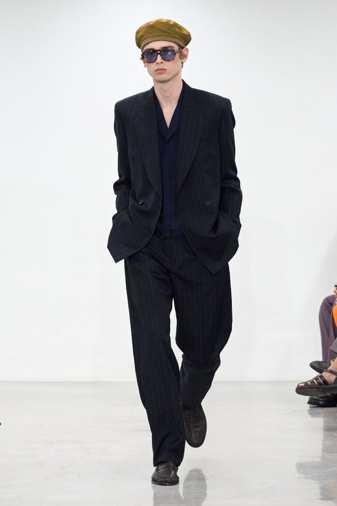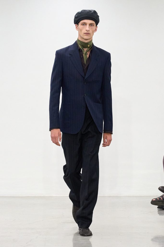 คอลเล็กชันนี้ยังมีลูกเล่นแบบยูทิลิตี้เบาๆ ผ่านกระเป๋าหลายช่องและหมวกเบเรต์ ซึ่งสมิธเล่าว่าเขาได้แรงบันดาลใจจากวันเสาร์ที่ใช้เวลานั่งฟังและดูแลลูกค้าที่ร้าน Paul Smith บนถนนอัลบีมาร์ลในลอนดอนด้วยตัวเอง