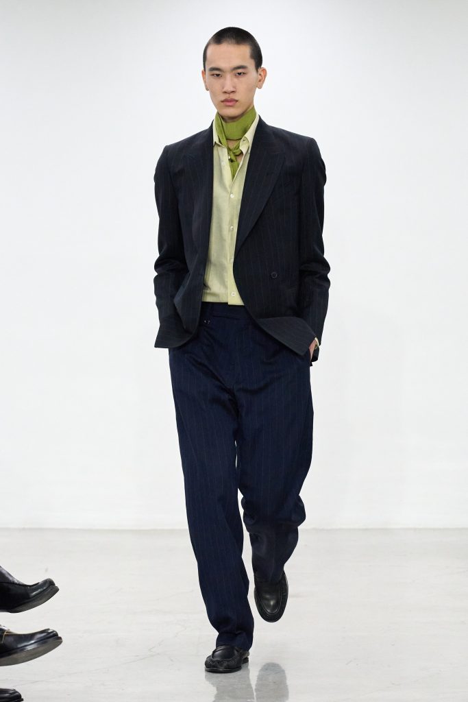 สไตลิ่งโดยรวมของคอลเล็กชันนี้ออกจะดูเรียบร้อยกว่าครั้งหลังๆ เน้นงานเทเลอร์ แต่ยังรักษาท่าทีสบายๆ ไว้อย่างไม่ขัดเขิน ความขี้เล่นเล็กๆ ซ่อนอยู่ในลายปลาที่ว่ายอยู่บนเสื้อเชิ้ตโอเวอร์ไซส์ ในทวินเซตไล่เฉดสี หรือแม้แต่ชุดสูทเรียบที่แต่งด้วยลายนกแบบแอปปลิเค่ก็เถอะ