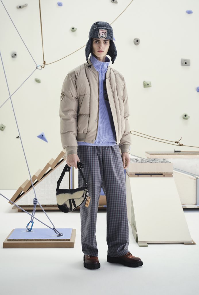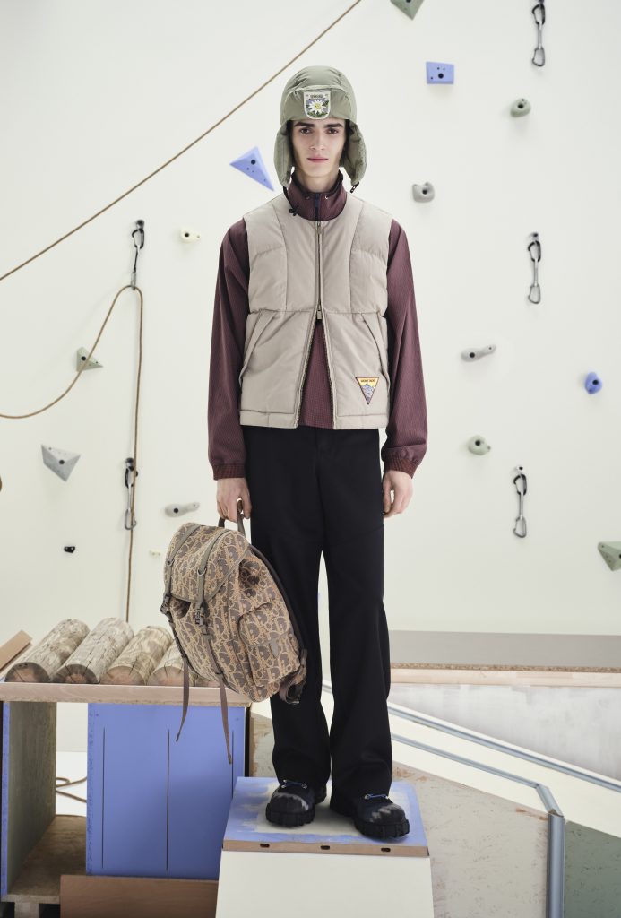องค์ประกอบแบบสปอร์ตยังคงถูกตีความใหม่ด้วยดีไซน์ที่สะอาดตาและวัสดุเทคนิคัลขั้นสูง ทั้ง hooded windbreaker ที่มาพร้อมแถบสะท้อนแสง long coat และ fleece jacket ที่เผยให้เห็นความกล้าในการทดลองของแบรนด์ ส่วนแอ็กเซสเซอรี่อย่างกระเป๋า Saddle ก็ถูกปลุกชีวิตอีกครั้งในรูปแบบ messenger, triple pouch และ zipped backpack ประดับด้วยแพตช์ Dior Mountain ซึ่งยังไปปรากฏบนหมวก chapka, cap และจิวเวลรี่ เสริมกลิ่นอายการผจญภัยให้กับลุคเมืองได้อย่างมีเสน่ห์