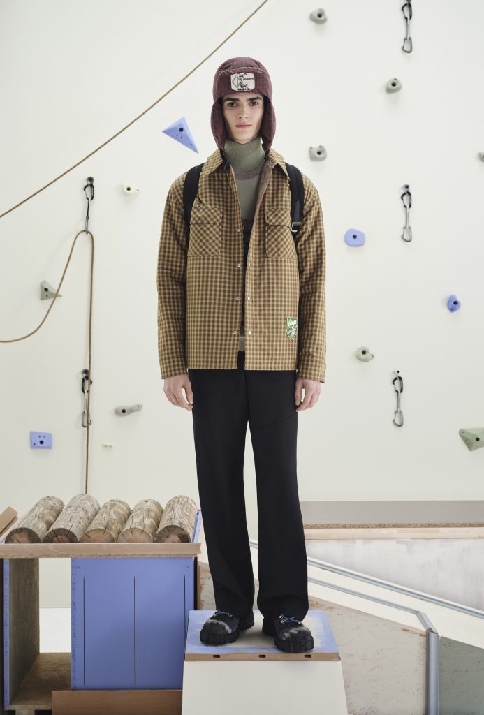 แคปซูลคอลเลกชันนี้คือบทสนทนาระหว่าง outdoor culture และ luxury codes ที่ Kim Jones ถ่ายทอดผ่านเสื้อผ้าเมนส์แวร์ ซึ่งเบลอขอบเขตระหว่างทางการและแคชชวลได้อย่างเฉียบคม ไม่ว่าจะเป็นการแมตช์เบลเซอร์กับกางเกงคาร์โกหรือสกีแพนต์ ไปจนถึงเชิ้ตลาย Ivy League checks ในโทนน้ำเงิน เบอร์กันดี และน้ำตาล กลิ่นอายพรีพพีที่ถูกยกระดับให้มีความร่วมสมัยในแบบ Dior