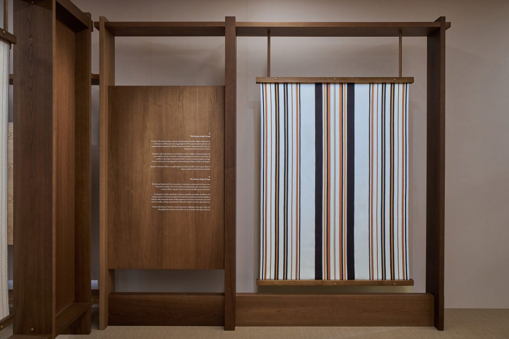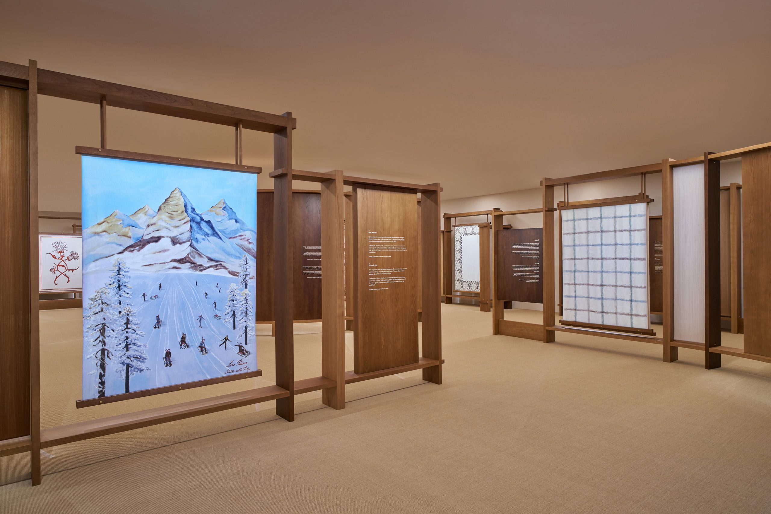 นอกจากนี้ นิทรรศการยังนำเสนอผลงานที่อ้างอิงถึงสัญลักษณ์เชิงประวัติศาสตร์และลวดลายกราฟิกจากแผนกจัดเก็บตัวอย่างของเมซง ก่อนนำมาตีความใหม่ผ่านศิลปะจัดวางในบริบทร่วมสมัย ความหลากหลายของสีสัน ลวดลาย และโครงสร้าง จึงกลายเป็นภาพสะท้อนของความชำนาญในงานฝีมือที่หลอมรวมอยู่ในสิ่งทอเพียงหนึ่งเดียว