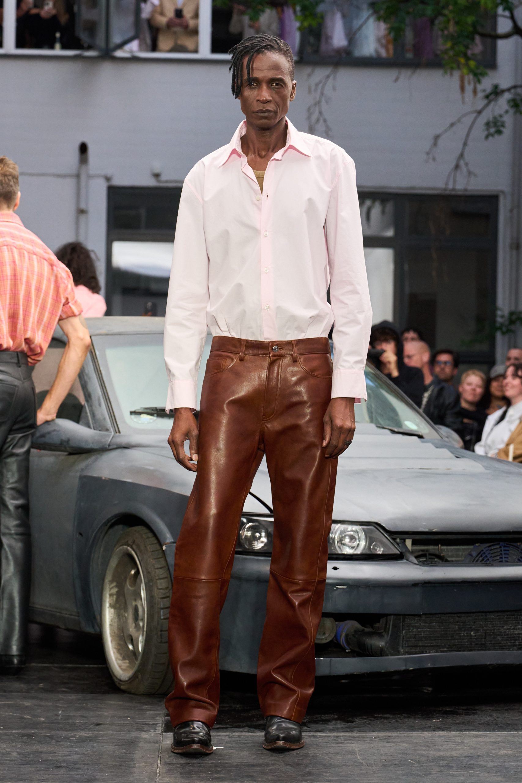 สิ่งที่ทำให้คอลเล็กชั่นนี้น่าสนใจคือการรักษามาตรฐานด้านงานสร้างสรรค์และงานช่างไว้ครบถ้วน แม้จะดู ‘ใส่ง่าย’ แต่แต่ละชิ้นกลับสะท้อนการเลือกใช้วัสดุคุณภาพสูงและการสร้างแพตเทิร์นที่แม่นยำ ตั้งแต่สูทลายทางทรงหลวมที่ถูกจับคู่กับเชิ้ตสีฟ้าอ่อนและเนกไทจุด ไปจนถึงแจ็กเก็ตและเสื้อเชิ้ตที่เน้นความทนทานในการสวมใส่จริง
