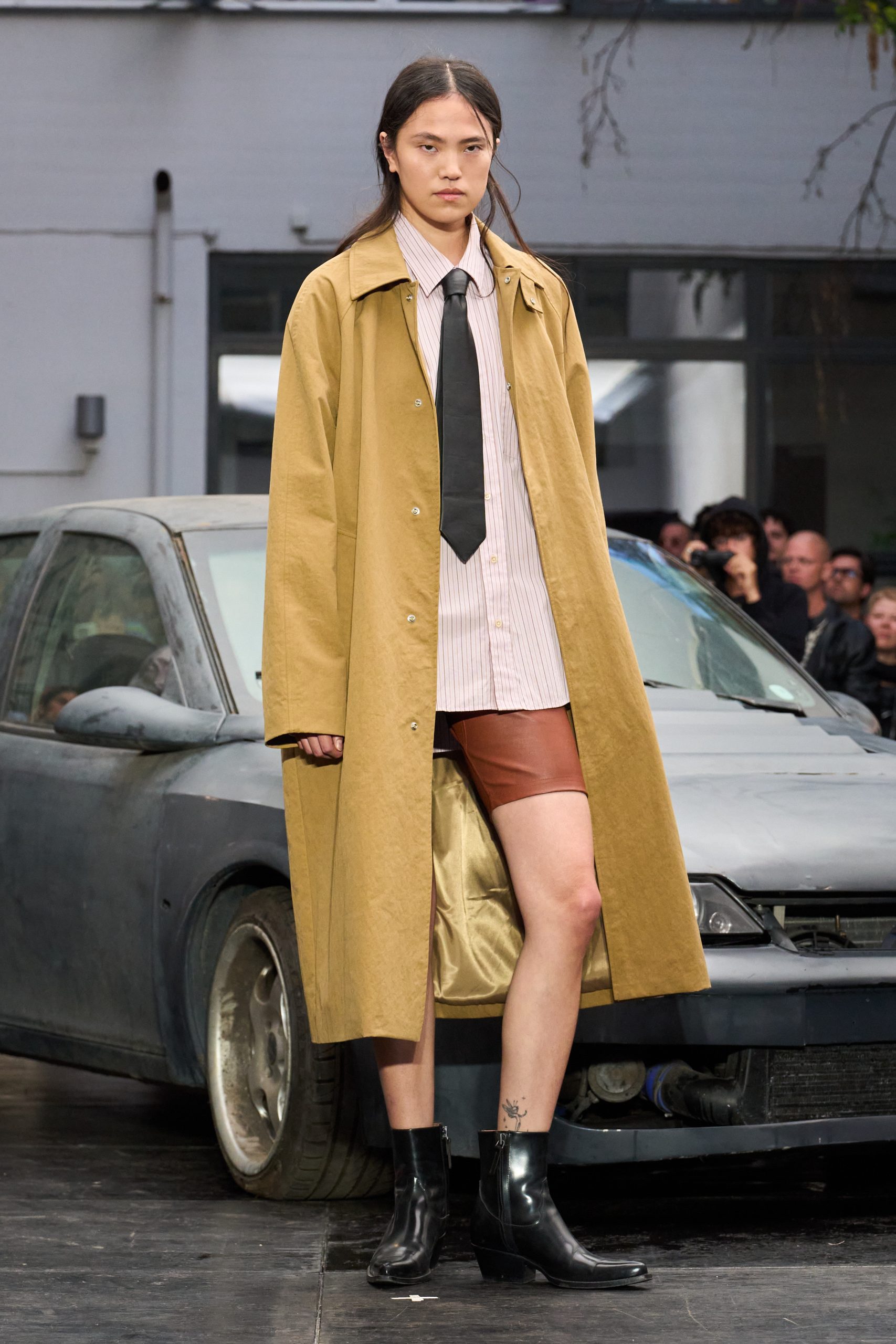 Sunflower แบรนด์จากโคเปนเฮเกนที่ขึ้นชื่อเรื่องความมินิมัลและโครงสร้างการตัดเย็บที่เนี้ยบ ก็เลือกจะก้าวตามบทสนทนานี้เช่นกัน คอลเล็กชั่น Spring/Summer 2026 ถูกนำเสนออย่างเป็นกันเองในคอร์ตยาร์ดของออฟฟิศที่โคเปนเฮเกน แต่กลับสร้างความหมายเชิงสัญลักษณ์ได้ลึกซึ้ง เพราะมันสะท้อนการกลับคืนสู่ ‘ความธรรมดา’ ที่จริงแท้และจับต้องได้