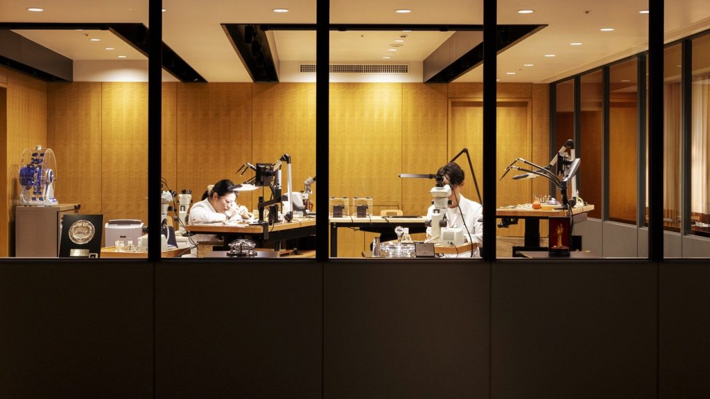 นอกจากนี้ ยังซ่อนตัวไว้ด้วยห้องทำงานดั้งเดิมของประธาน Seiko และที่ตั้งของ Atelier Ginza ห้องปฏิบัติการสร้างสรรค์นาฬิกาสลับซับซ้อนสูงอันโด่งดังของแบรนด์ อย่าง นาฬิกาซับซ้อนด้วยจักรกลตีเสียงบอกเวลาของ Credor Constant Force Tourbillon ซึ่ง ณ ห้องปฏิบัติการนี้ เราได้พบและพูดคุยกับ Takuma Kawauchiya หนึ่งในช่างนาฬิกาและนักออกแบบกลไกผู้มีบทบาทสำคัญต่อความสำเร็จในการพัฒนาและออกแบบ Caliber 9SA5 รวมถึงนาฬิกาสลับซับซ้อนของบริษัท ขณะที่ ณ ห้างสรรพสินค้า Ginza Wako ยังมีศูนย์รวมของเหล่าคนรักนาฬิกาแบรนด์ญี่ปุ่นต้นตำรับ อย่าง Grand Seiko Flagship Boutique Ginza ซึ่งแน่นอนว่าที่นี่มีทั้งความครบครันของเรื่องราวทางประวัติศาสตร์ของแบรนด์ที่บอกเล่าผ่านการจัดแสดงผลงานรุ่นสำคัญจากยุคสมัยต่างๆ ร่วมไปกับคอลเล็กชั่นปัจจุบันของนาฬิกา Grand Seiko และนาฬิการุ่นเอ็กซ์คลูซีฟสำหรับบูติกแห่งนี้ไว้สำหรับคอยต้อนรับผู้ที่หลงใหลในเรือนเวลาโดยเฉพาะ ทั้งยังสะท้อนถึงแคมเปญ ‘The Gift of Time’ ที่ถ่ายทอดถึงความล้ำค่าจากของขวัญแห่งกาลเวลา ที่นำเสนอผ่านแนวคิดและแนวทางการสร้างสรรค์นาฬิกาตามแบบประเพณีและวัฒนธรรมของ Grand Seiko