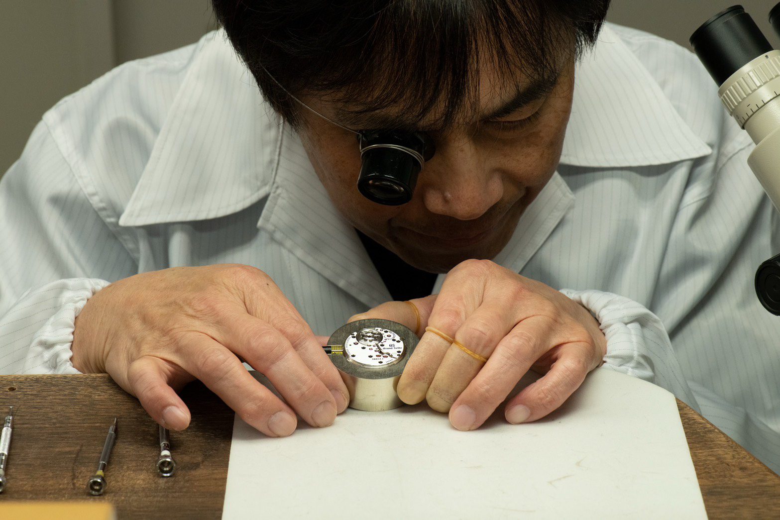ในระหว่างการเดินทางสัมผัสประสบการณ์ของ Grand Seiko ครั้งนี้ ไฮไลต์จริงๆ ย่อมอยู่ที่การได้เข้าเยี่ยมชมโรงงานการผลิตทั้งที่ Shinshu Watch Studio ภายในโรงงาน Seiko Epson Shiojiri ซึ่งนับเป็นต้นสายการผลิตกลไก Spring Drive Caliber 9R และกลไกควอตซ์ Caliber 9F ซึ่งเป็นกลไกอันมีชื่อเสียงของ Grand Seiko ทั้งจากความสมบูรณ์แบบและประสิทธิภาพ ความสวยงามและความประณีต ความเที่ยงตรงแม่นยำและการผสมผสานเทคโนโลยีการผลิตอันล้ำสมัยในแต่ละกระบวนการการออกแบบ พัฒนาและผลิตกลไกอันซับซ้อนและทันสมัยเหล่านี้ อย่างกลไก Caliber 9R ด้วยคอนเซปต์ของการพัฒนากลไกจักรกลโดยการใช้ควอตซ์ แต่ไม่ใช้แบตเตอรี่ เพื่อช่วยในแง่ของการยกระดับด้านความเที่ยงตรงของกลไก โดยคาลิเบอร์นี้ถือเป็นกลไกจักรกลอัตโนมัติที่มีความเที่ยงตรงสูงถึงระดับ +/-15 วินาทีต่อเดือน หรือ +/-1 วินาทีต่อวัน และยังคงสำรองพลังงานได้นาน 72 ชั่วโมง ขณะที่ด้านกลไกควอตซ์เครื่อง In-house อย่าง Caliber 9F ก็นับเป็นตัวอย่างของผลิตผลอันเป็นเลิศของโรงงานแห่งนี้เช่นกัน โดยเปิดตัวแนะนำเป็นครั้งแรกเมื่อปี 1993 จากแนวคิดของการพัฒนาขึ้นเฉพาะสำหรับนาฬิกา Grand Seiko ด้วยความเที่ยงตรงสูง +/-10 วินาทีต่อปี ที่ถือว่าสูงกว่ากลไกควอตซ์ทั่วไปซึ่งอยู่ที่ระดับ +/-15 ถึง 20 วินาทีต่อเดือน พร้อมทั้งผสมผสานด้วยเอกลักษณ์เฉพาะตัวของนาฬิกาและกลไก Caliber 9F ซึ่งประกอบด้วยมือ ทั้งความสามารถในการอ่านค่าเวลาได้อย่างชัดเจนสูงด้วยเข็มชี้แบบทึบและยาวจนถึงมาร์กเกอร์บอกเวลาที่ไม่เหมือนใคร